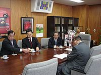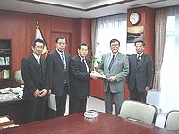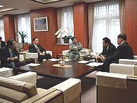 午後4時40分、山本代議士、太田代表とも合流し大臣室へ。テレビに出てくる大きな体の大臣が目の前にいた。
